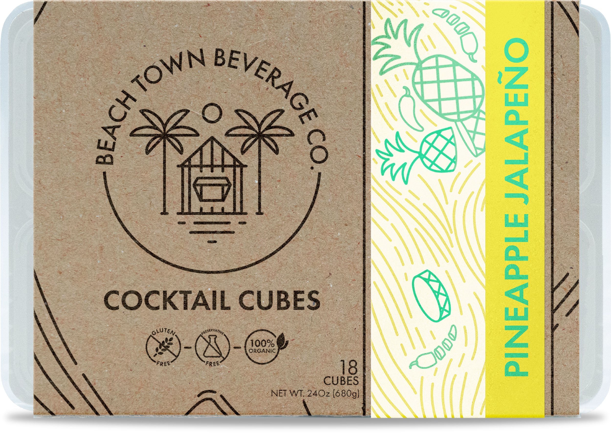 Branding, original illustrations, and packaging designs for Beach Town Beverage Co., a “cocktail ice cube” and drink mix brand based in South County, RI.