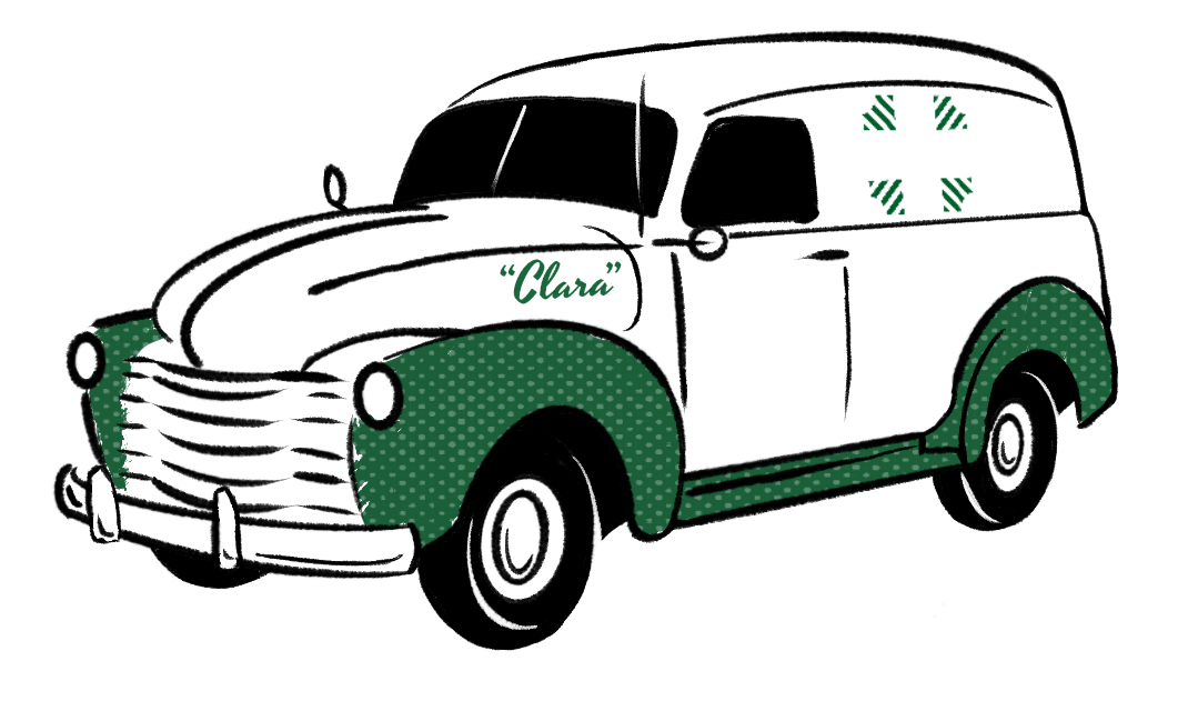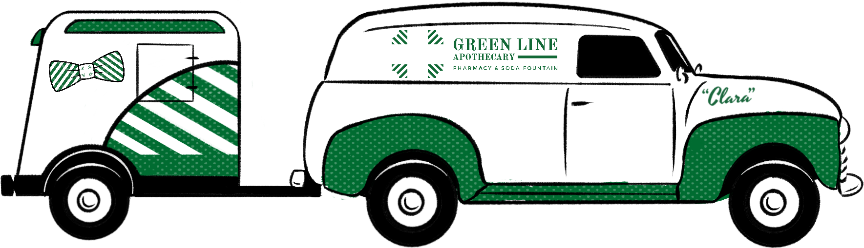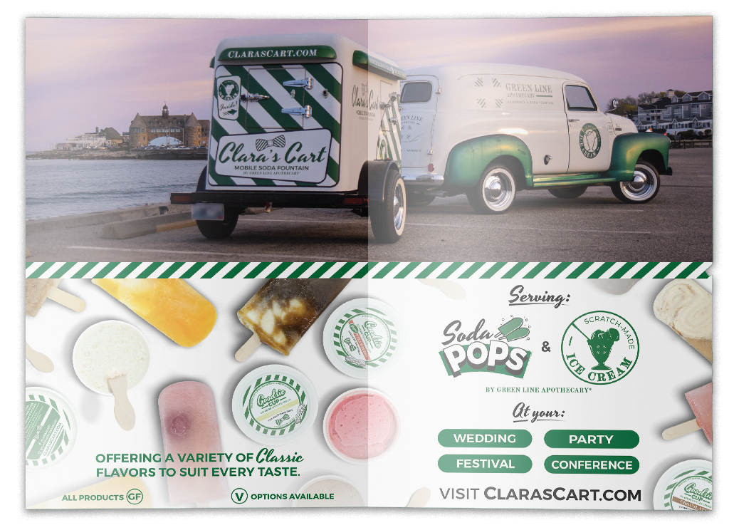 Marketing collateral, label design and product photography for Clara’s Cart - Green Line Apothecary’s 1949 chevy delivery van and mobile soda fountain.